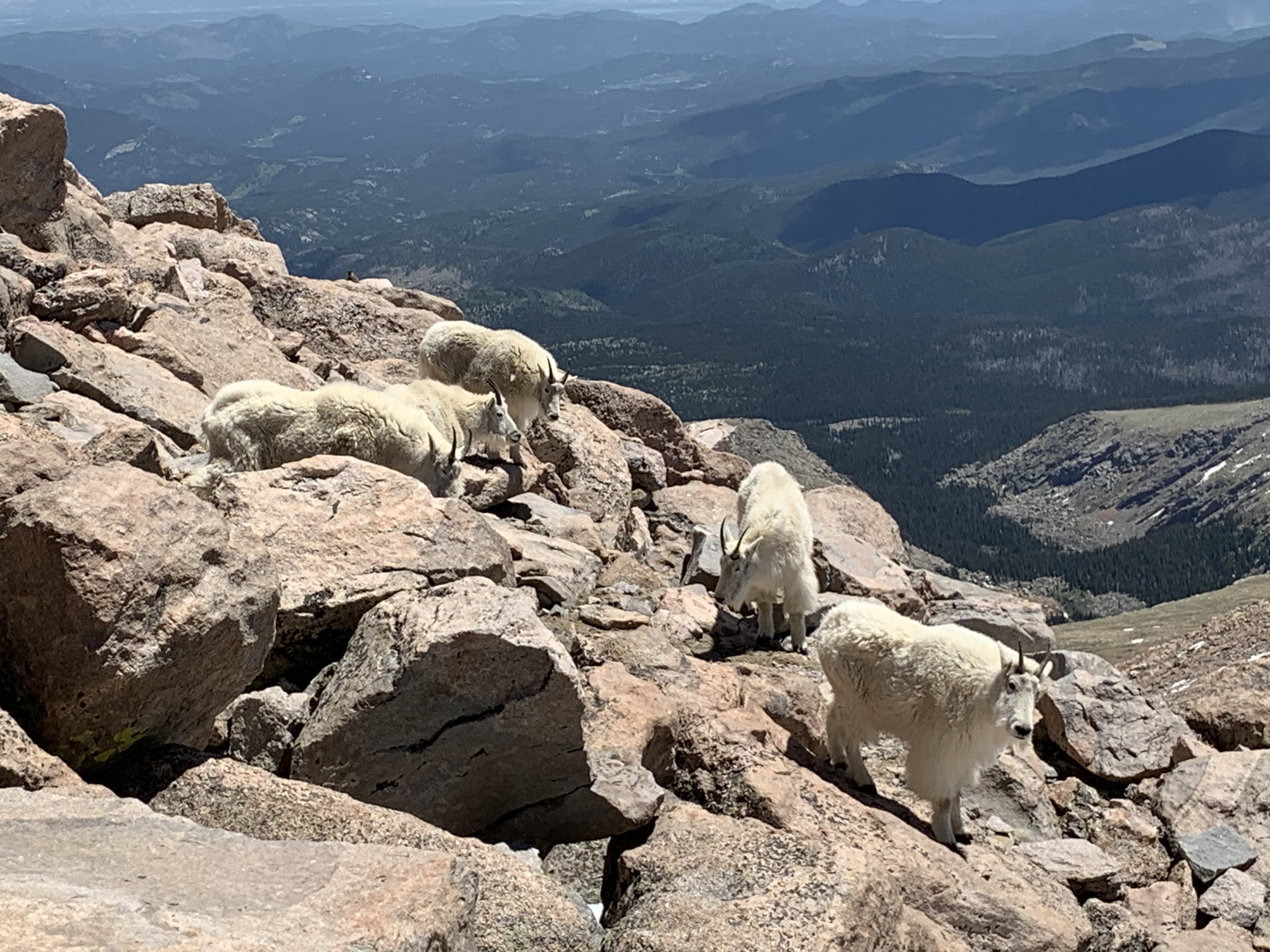 There is a hiking trail near the summit of Mount Evans you can take that follows a narrow, snowy ridge into the vastness of the distant Rocky Mountains. There are plenty of high rocky points along the way to rest at and take in the view, and that’s exactly what I did. I parked, got my gear ready, and headed towards the rising ridge of the mountain. On my way, a herd of mountain goats passed me, paying me little attention, occasionally stopping to eat the various plants that had recently been exposed from the melting snow and ice. Marmots could be seen squatting on elevated rocks cautiously scouting their terrain and tossing me an occasional glance of curiosity. Birds passed above and below me, their calls echoing, bouncing off of the mountain walls to add to the sensory experience.
