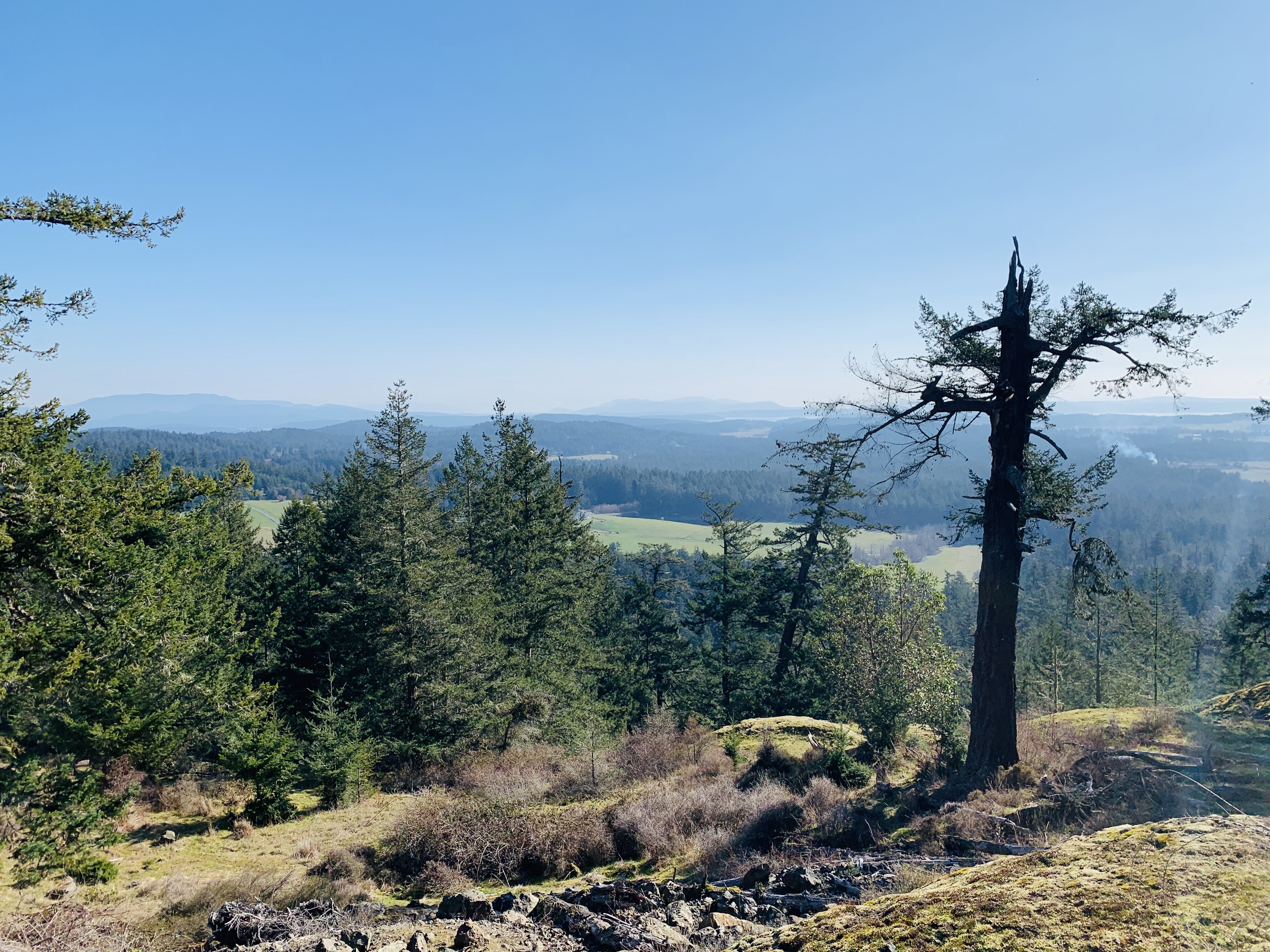 And so, I felt I must escape, if only for a moment, into the warm embrace of nature and perhaps take in the quiet lessons it has to offer. Nature has a notoriously beautiful way of giving you fresh perspective, and so escape into it I did. My first stop on San Juan Island was up Mt Grant, one of the tallest points in the middle of the island with a 360-degree view of the surrounding land. I remember weaving up the trail in the early hours of the morning through the dense forest of oak, hemlocks, and firs, to the top of the ridge.