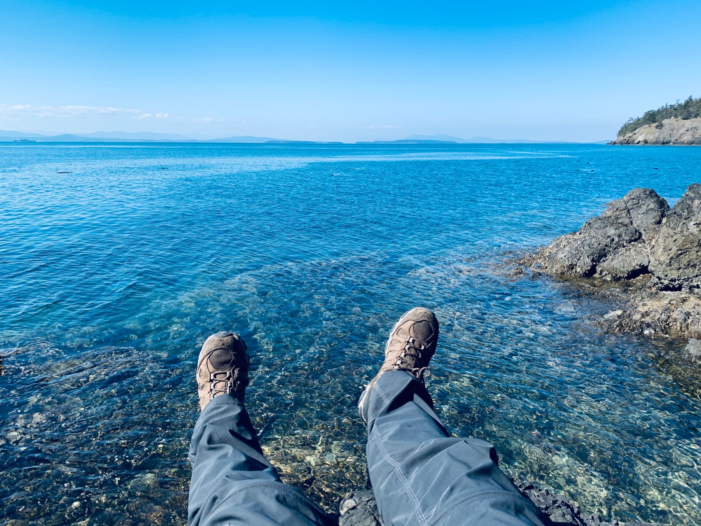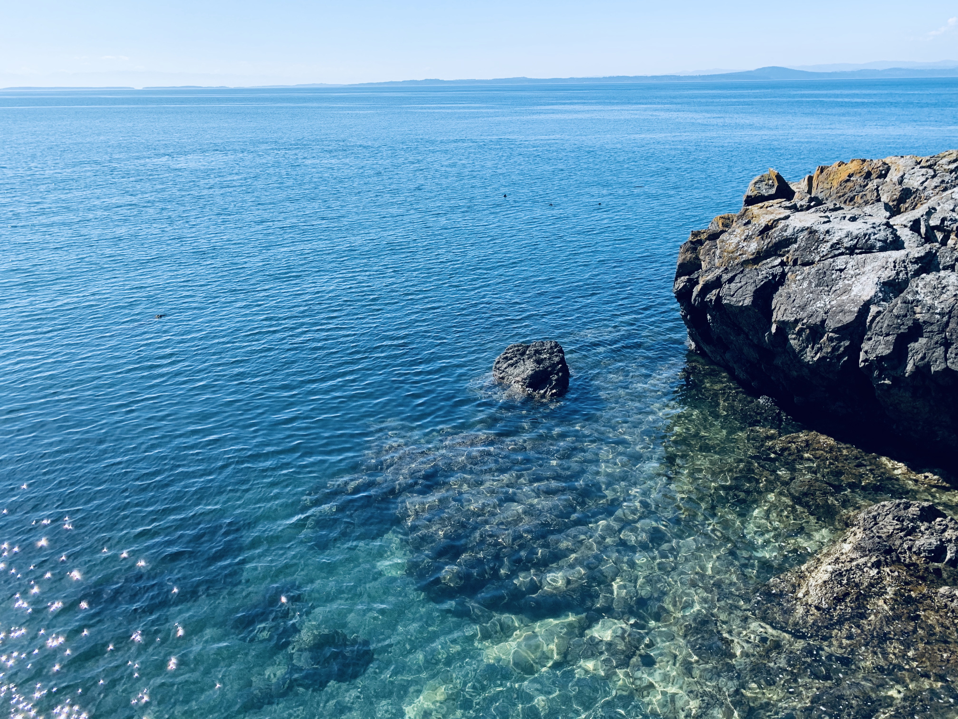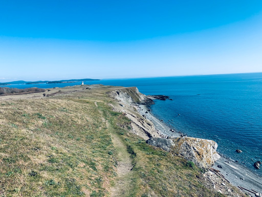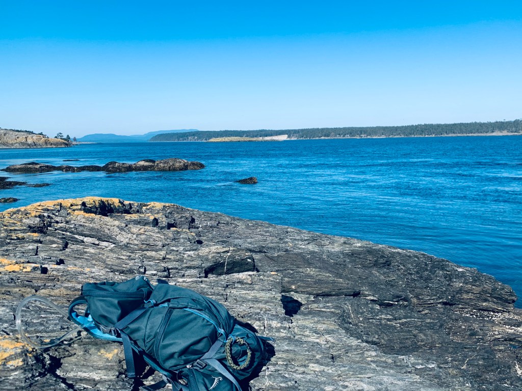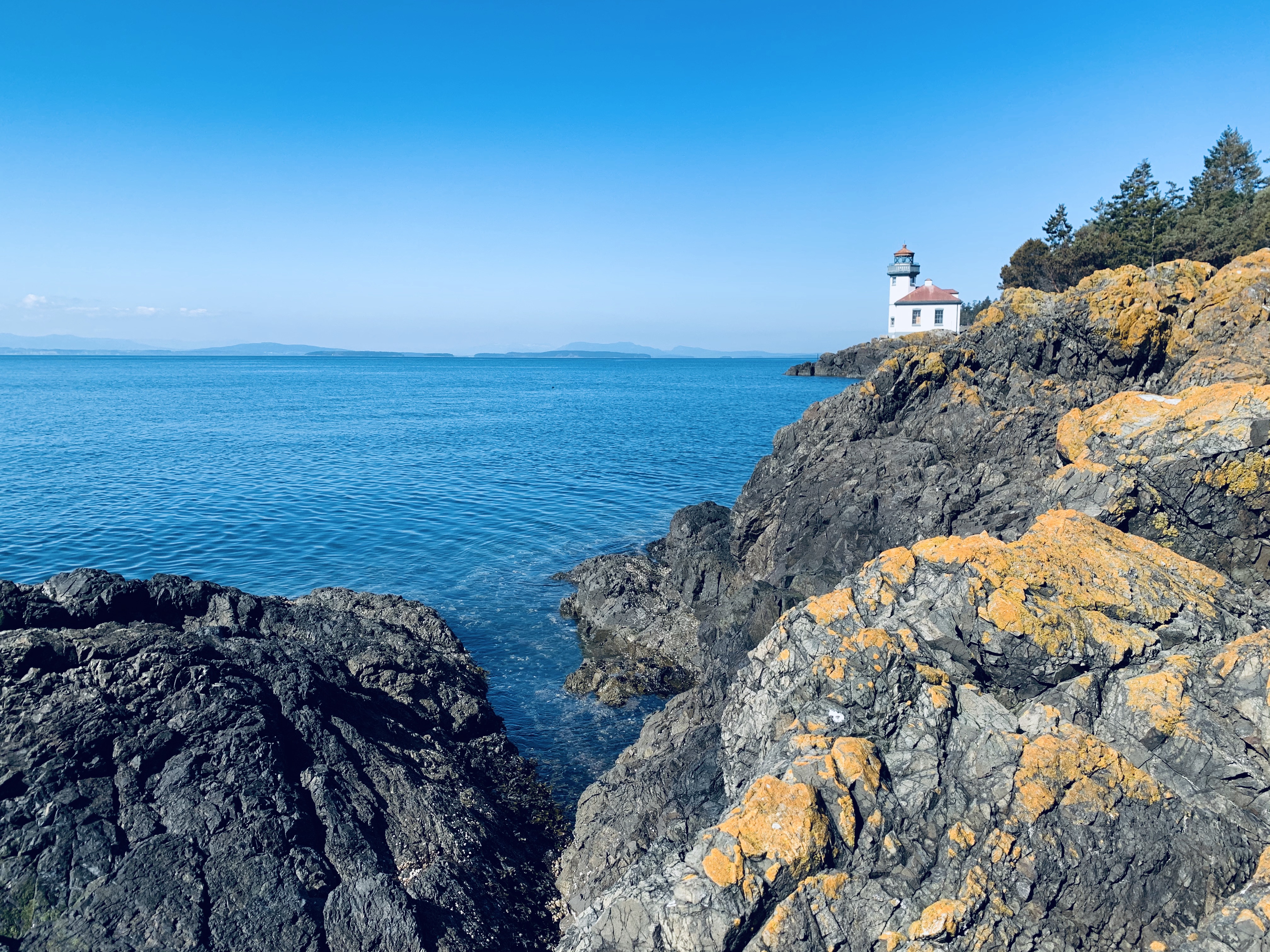I ventured down off the mountain and headed to the Western shore of the island, which directly looked over to Canada’s Vancouver Island. Getting close to the water, the thing that initially struck me was the depth and layers of colors within the water as it ebbed and flowed with the tide. The lichens and mosses painted a brilliant canvas of the already stunningly textured rocks. It was here, by a solitary lighthouse that I sat and wandered. As I listened to the gentle waves and felt the cool breeze on my skin, I looked over to Canada. The island was close, maybe a ten-minute boat ride, but I thought about the complexity of just taking a boat or kayak over to the adjacent island. How simple of an act it would be, and yet not an option without a passport and border questioning and the like.