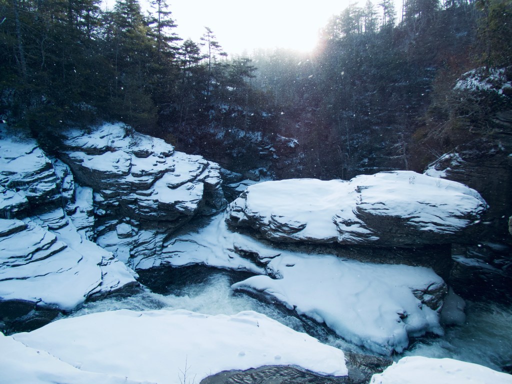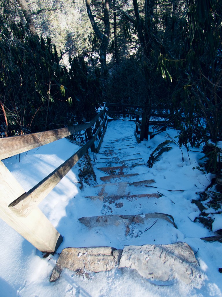 I eventually made it to the branching trails off of the main trail that jutted upwards or downwards to reach the various gorge overlooks. These off-shotting trails were steep and icy, some with stairs that were covered with snowfall from the night before. I had to be extra careful here. One slip could mean a broken arm or ankle. I was all alone with no cell service. Thoughts of being injured and the inability to make it back on my own flooded my mind. I thought about the biting winds and how unfriendly they would be to an injured wanderer. I thought about being alone out there during nightfall, when the degrees would be in the single digits and the cold would overtake me. This was no place to stay for very long. Still, I trekked onward, almost relishing the presence of danger, as it seemed to enliven the air and make me that much more perceptive of my environment.