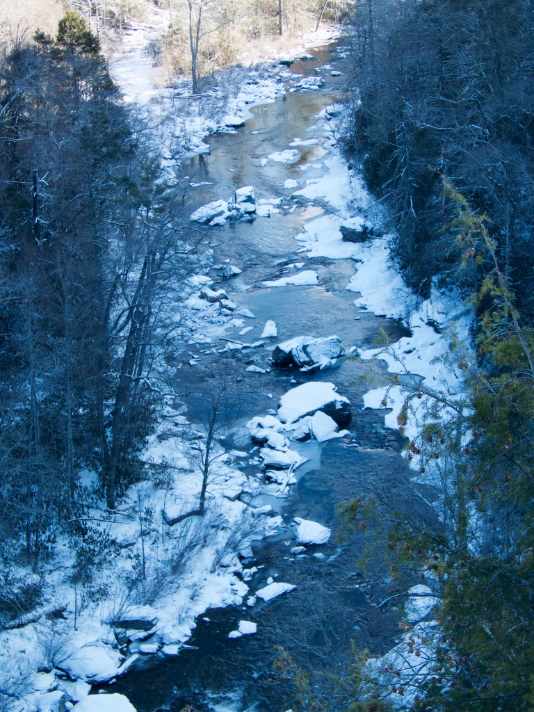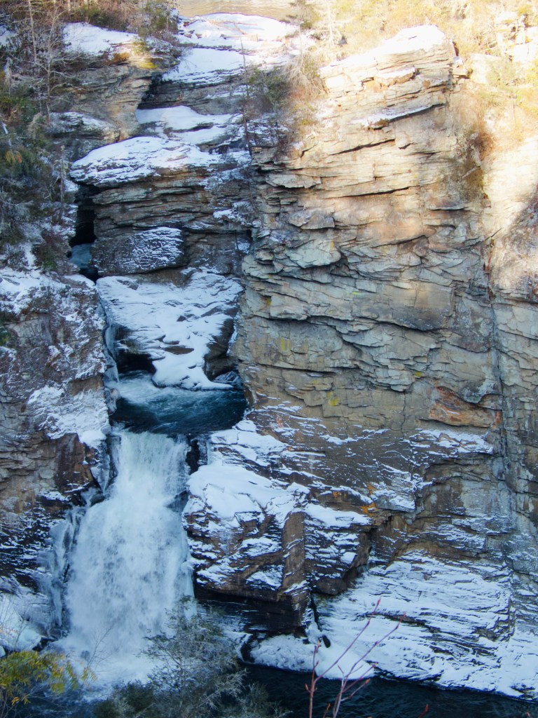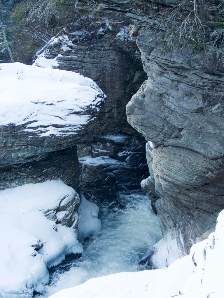 Reaching the gorge overlooks, I could look out to see Linville Falls and the steady rush of the river. Ice covered the jagged rocks around the water’s edges, adding to the already turbulent, violent nature of the scene. The sharpness of the ice matched the sharpness of the rock, amplifying the menacing yet gorgeous effect.