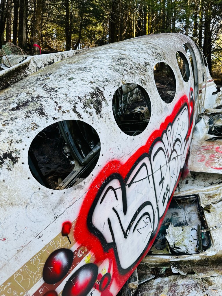 Some people had asked if the plane site had been tarnished with graffiti, which it definitely had been. Some verbalized their disdain for this, which I can understand. I personally didn’t mind the graffiti. It isn’t like it was defacing a natural monument or spectacle. The plane was manmade just as the graffiti and art and writings etched into its sides were. Over the years, as people have wandered upon this site, they have added to this grime sanctuary with their own experience and contributions. In a way, it expressed why people come to these places in the first place. People want to be remembered. People want to proclaim that they are alive. They want to leave a mark. They want their lives and their experience there to be remembered in a way, to mean something. They want to add to this display of death. In a way, it is like saying “Here I am. I am alive. I still survive and persist among the destruction. Here is my message, here is my grasp at immortality.” The plane crash is not stagnant, as nothing really is. It will transform either by the layers of spray paint and knife carvings that will inevitably be added, or the slow takeover of the surrounding vegetation. It will become something new. And even though it symbolizes death, it also symbolizes life and change and growth. What a strange thing to encounter on such a beautiful hike. I will take the gratitude and assurance given by this place with me, and change and grow over the years along with it.