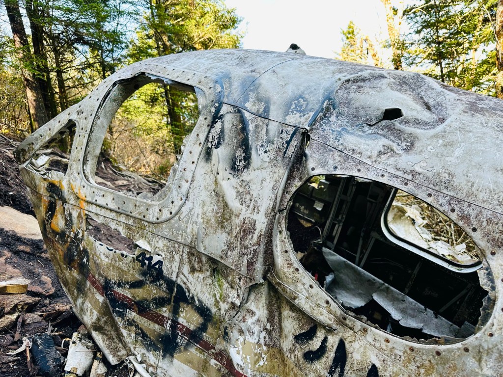 I circled the plane one more time, weaving myself in and out of the heaps of metal for one last fleeting look. I took some deep breaths, taking in the surrounding forest and song birds around me. It was an uplifting sympathy in contrast to the bleak finality of this old, charred ruin. As I headed up the ridge and then back down the mountain on the main trail in the mid-morning, groups of people began pouring onto the trail. Stopping at resting spots and overlooks, I talked with many who were interested in this plane crash they had read about or heard. They were asking me where exactly they could find it. As I gave more people the details, I kept thinking how curious it is that so many people seek out such a dreary spectacle. They are like me, there is some innate fascination with death that we have, especially dramatic forms of it. There is something that speaks to us between the tangled and contorted metal scraps, beckoning us towards some truth and begging us to create a story out of it, to make sense of it.