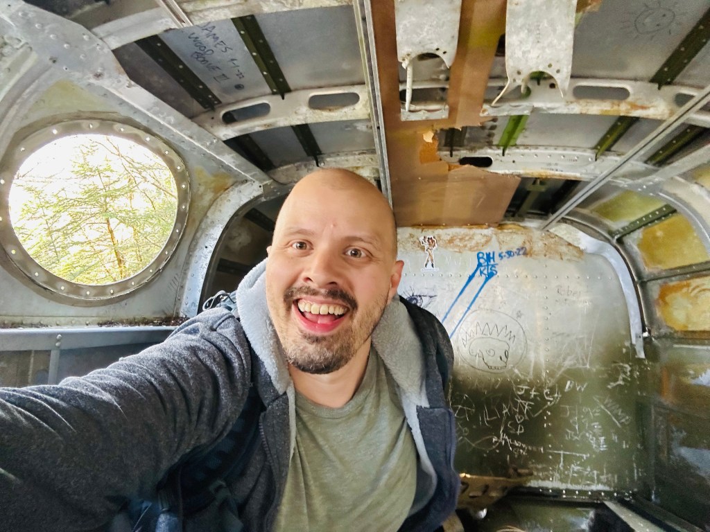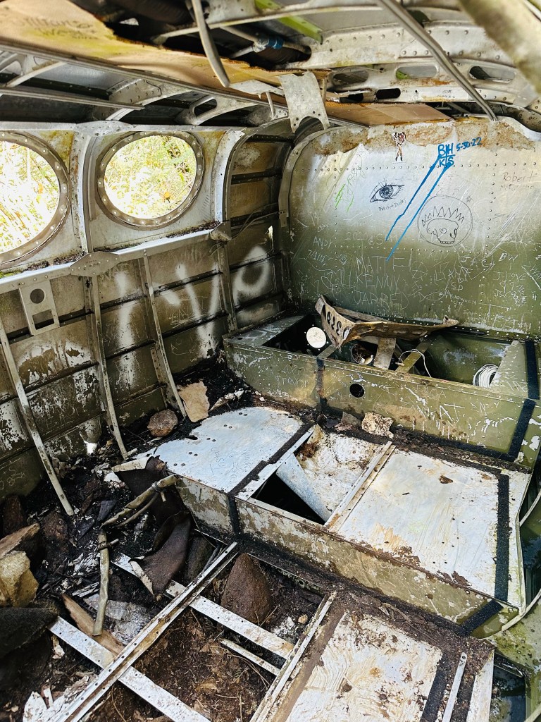 One of the wings was still impressively pieced together, but more surprising was that the fuselage was still largely intact. The circular windows revealed the gutted interior of the plane. It was a metallic skeleton. As I cautiously stepped inside through a door on the lefthand side, I noticed that near the tail end of the plane was some kind of seat or storage area. You could lean back into this elevated piece to face the hollowed-out upward slopping nose of the plane. There in that little nook, I felt a childlike calmness and enthusiasm. It was ironically like finding a little safe space cradled in this macabre chamber, the metal holding and enrapturing me. As strange and ironic as it may sound, there was a quiet, enclosed security about it. It began to function like a church in the emotion it invoked. It gave me a moment of pause and drew me into its rusty beauty. It provided a place to reflect and breathe and take in the warped and distorted but alluring details.